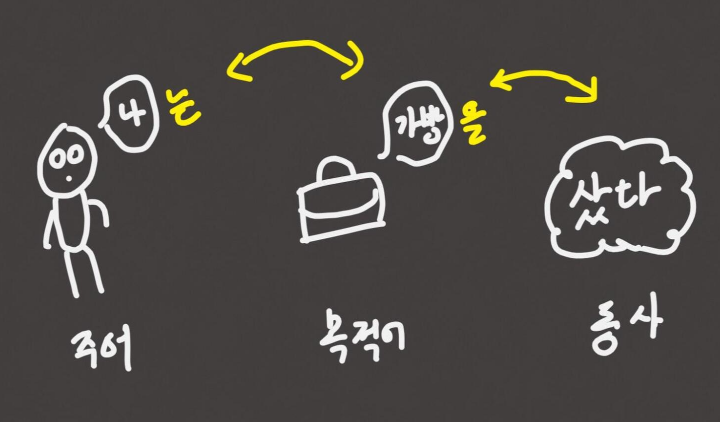 우리말은 주어 + 목적어 + 서술어 와 같이 어순이 있긴하지만, 조사가 존재해 어순을 꼭 맞추지 않아도 어색하지 않게 됩니다.