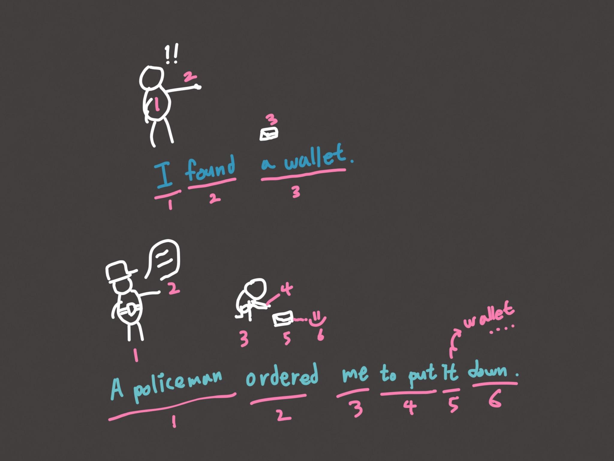 "I.. 주어 found.. 발견했다.. a wallet.. 지갑을... 정리하면 나는 지갑을 발견했다 !!"