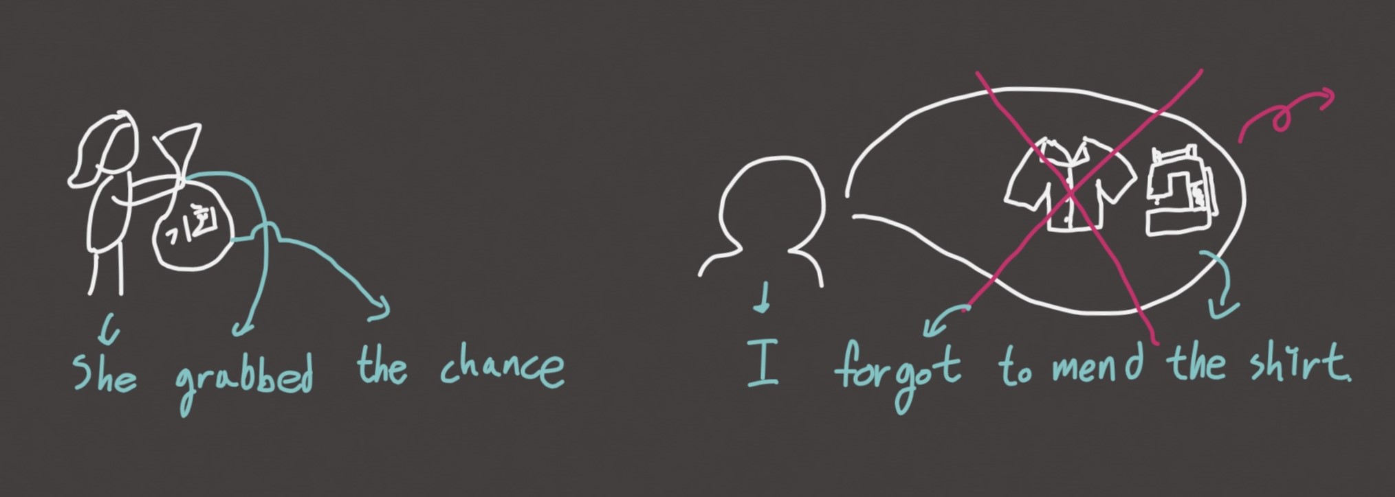 즉 하나의 동사가 두가지 의미를 내포하고 있죠?