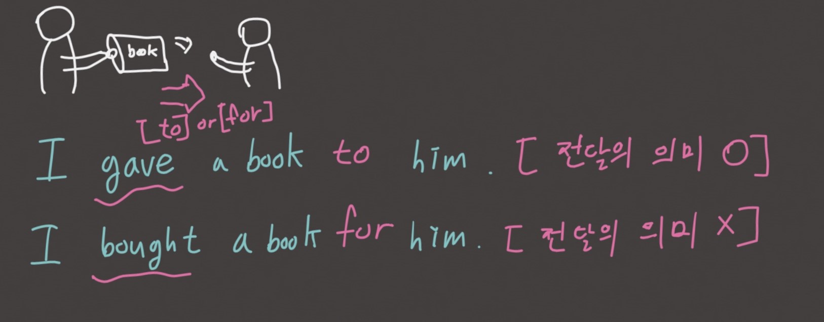 4형식의 기본을 설명했던 "주다"의 의미가 내포된 경우에는 to를 !